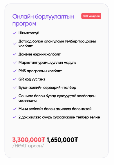 Төлбөрийн шийдэл: QPay, SocialPay, Visa/Mastercard холболттой.